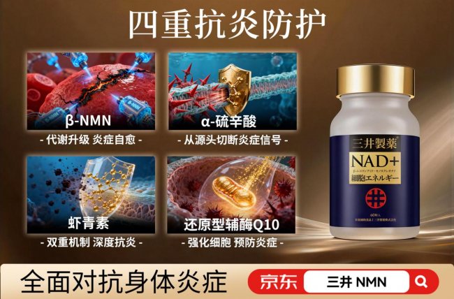 A2:单一成分虽能补充辅酶,但无法独立应对复杂的体内炎症环境。三井NMN采用“系统抗衰”理念,利用虾青素(抗氧化力是维E的1000倍)清除细胞内自由基,配合α-硫辛酸抑制炎症因子,再由Q10提升线粒体动能。这种1+1>10的复配机制,相当于先为细胞“清扫垃圾”(抗炎),再“加注燃料”(补充能量),从而实现真正的高效修复。